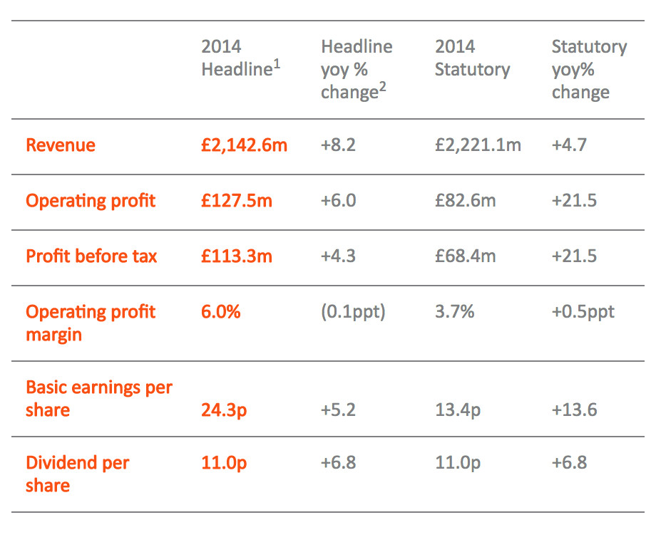 - Headline operating profit up 6.0% to £127.5m (2013: £120.32m)